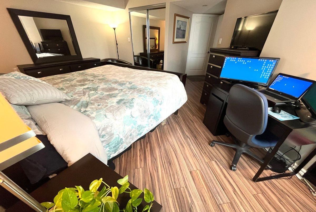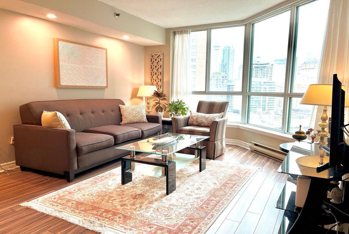 Fully Furnished! Largest One Bedrm Suite In Bldg Approx 809 Sqft & 2 Bathroom In Award Winning 'Minto Plaza. Gorgeous South/West View Of The City & Cn Tower. Superb Amenities: Indoor Pool, Jacuzzi. Sauna, Exercise Rm, 24 Hr Security. Close To The Hospitals, Universities, Eaton Centre, Subway & Ttc. High Demand Location. ...